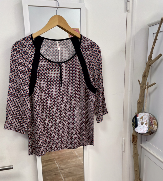 Blouse manches 3/4 fluide avec petit zip au décolleté